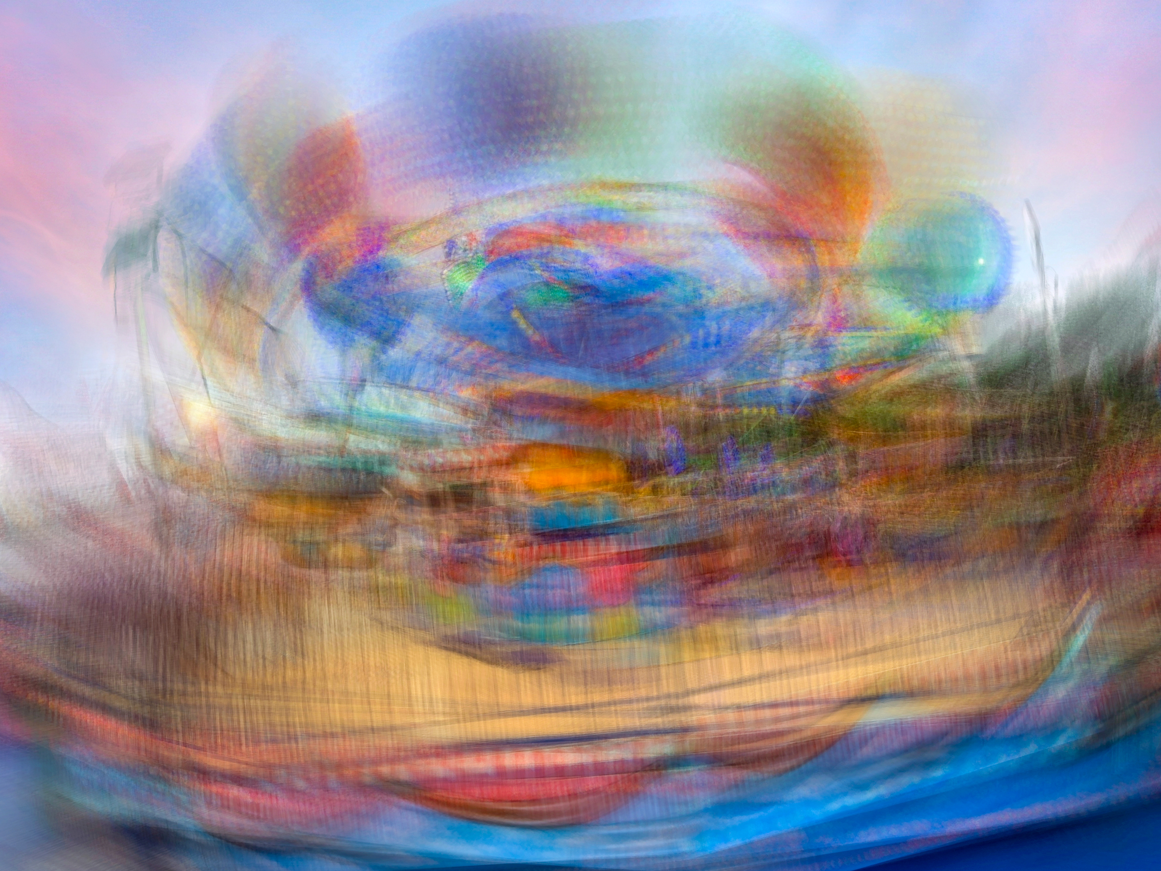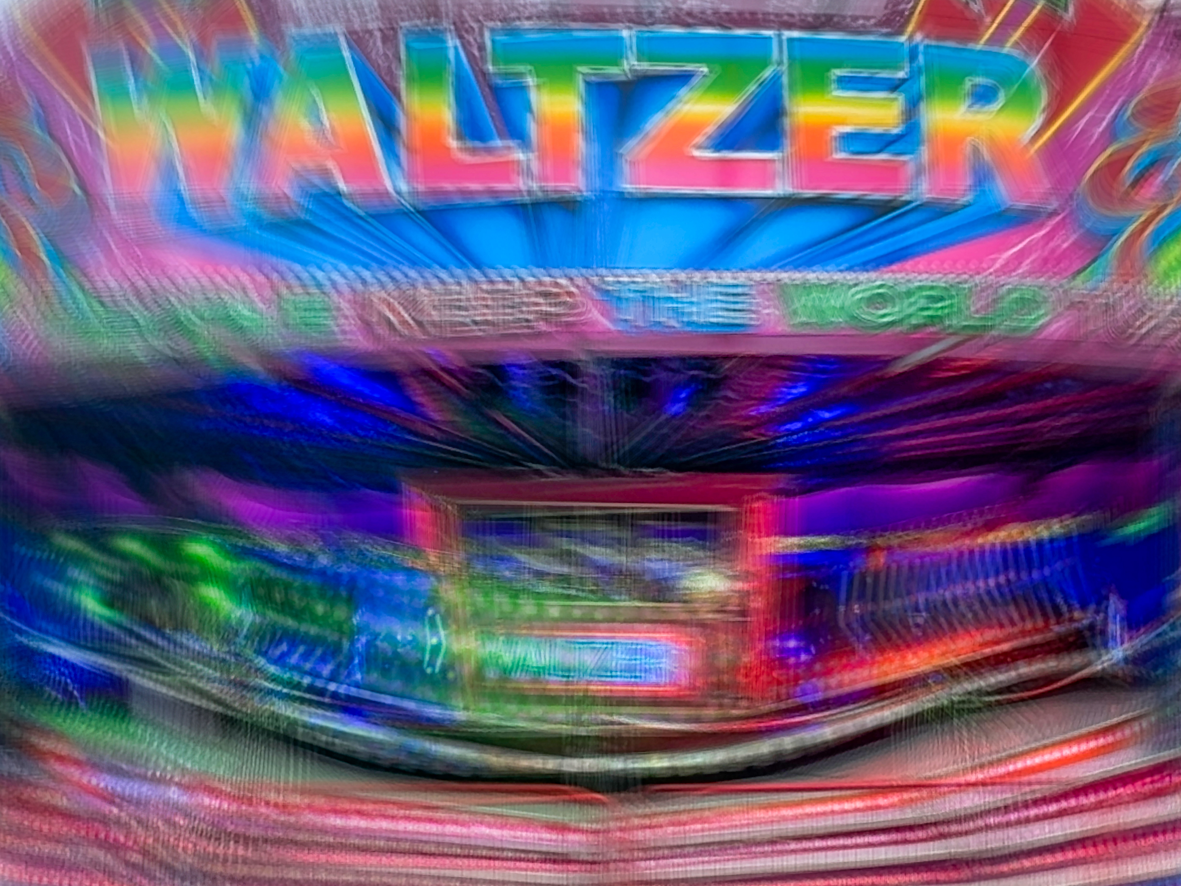As the sun dips, the fairground roars to life - senses are bombarded. Lights flash and colours illuminate the night sky. Thumping beats merge with excited screams and laughter from thrill-seekers on the rides. The sizzle of burgers mixes with the sweet scent of doughnuts, and the sugary pull of freshly spun candy floss fill the air. It's chaos and magic. The night pulses with electric joy.