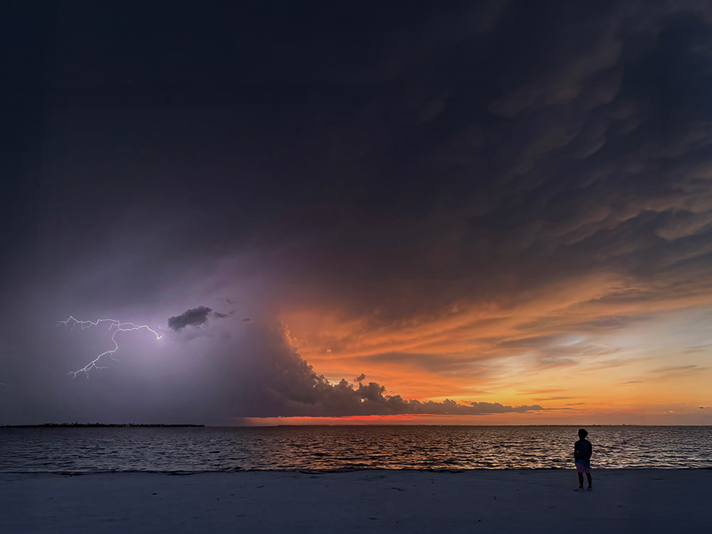 The air was heavy, still, and full of tension as I stood on a small stretch of sand, watching a thunderstorm build over the Sanibel Causeway in southwest Florida. Clouds mushroomed until they towered like mountains, darkening as they swallowed the last rays of the day.