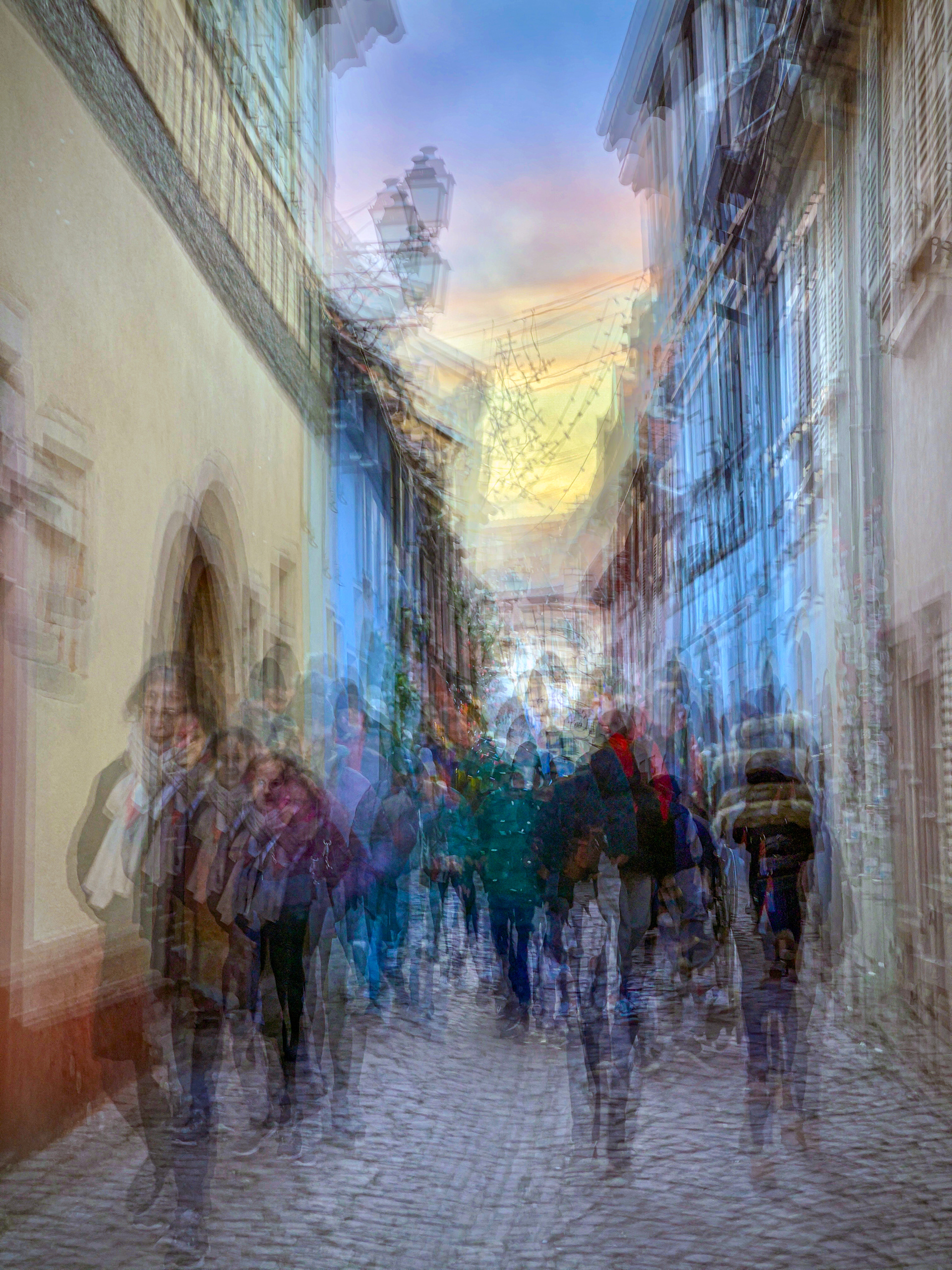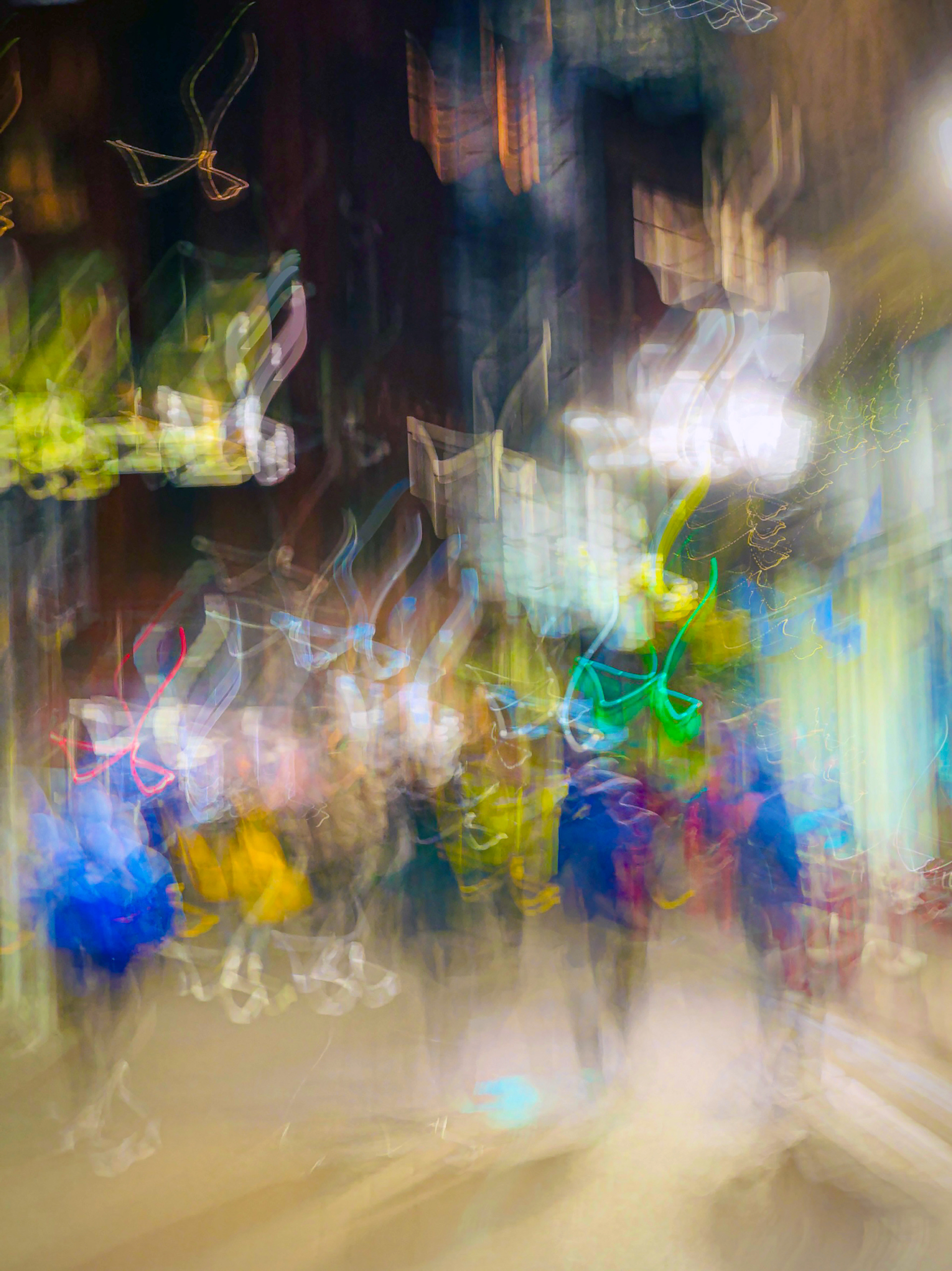 For sometime I've wanted to capture these spectacular winter villages in a unique way. I was convinced that they would make excellent subjects for the style of abstract photography that I find so appealing. Instead of attempting to accurately capture all the details or precise information about the subject, I wanted to portray an overall impression. This approach leaves the mind of the spectator free to fill in the blanks and give their own interpretation to what they perceive in the image. So I set out to record my experience of these bright, crowded places that are full of seasonal sparkle and cheer.