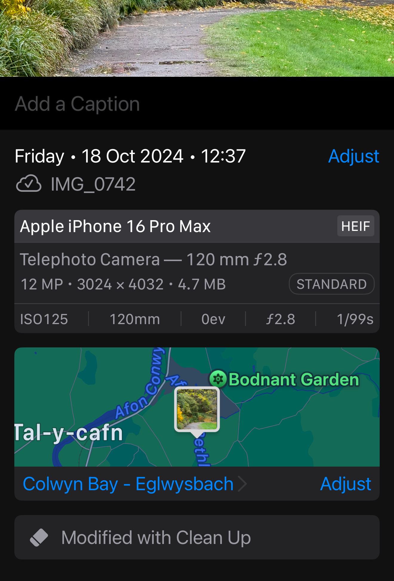 Apple’s initial venture into AI-powered object removal is mostly a success, effectively fulfilling its promise of cleaning up images by removing unwanted elements. I also appreciate that images edited with the Clean Up feature are tagged as "Modified with Clean Up," with embedded metadata indicating that alterations have been made.
