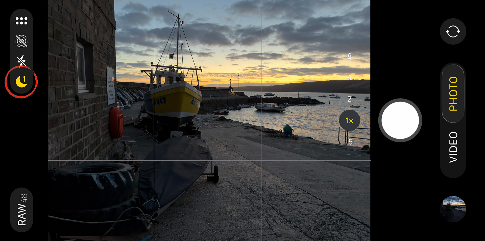 Night Mode is the iPhone's way of handling really dark scenes. It isn't something you can force on in bright light, the camera decides when conditions are dim enough and quietly goes to work. Instead of taking a single frame, it captures a burst of images, aligns them, and blends the best parts together. The result is a photo that looks brighter, with less noise and more detail in the shadows, while still keeping colours natural.
