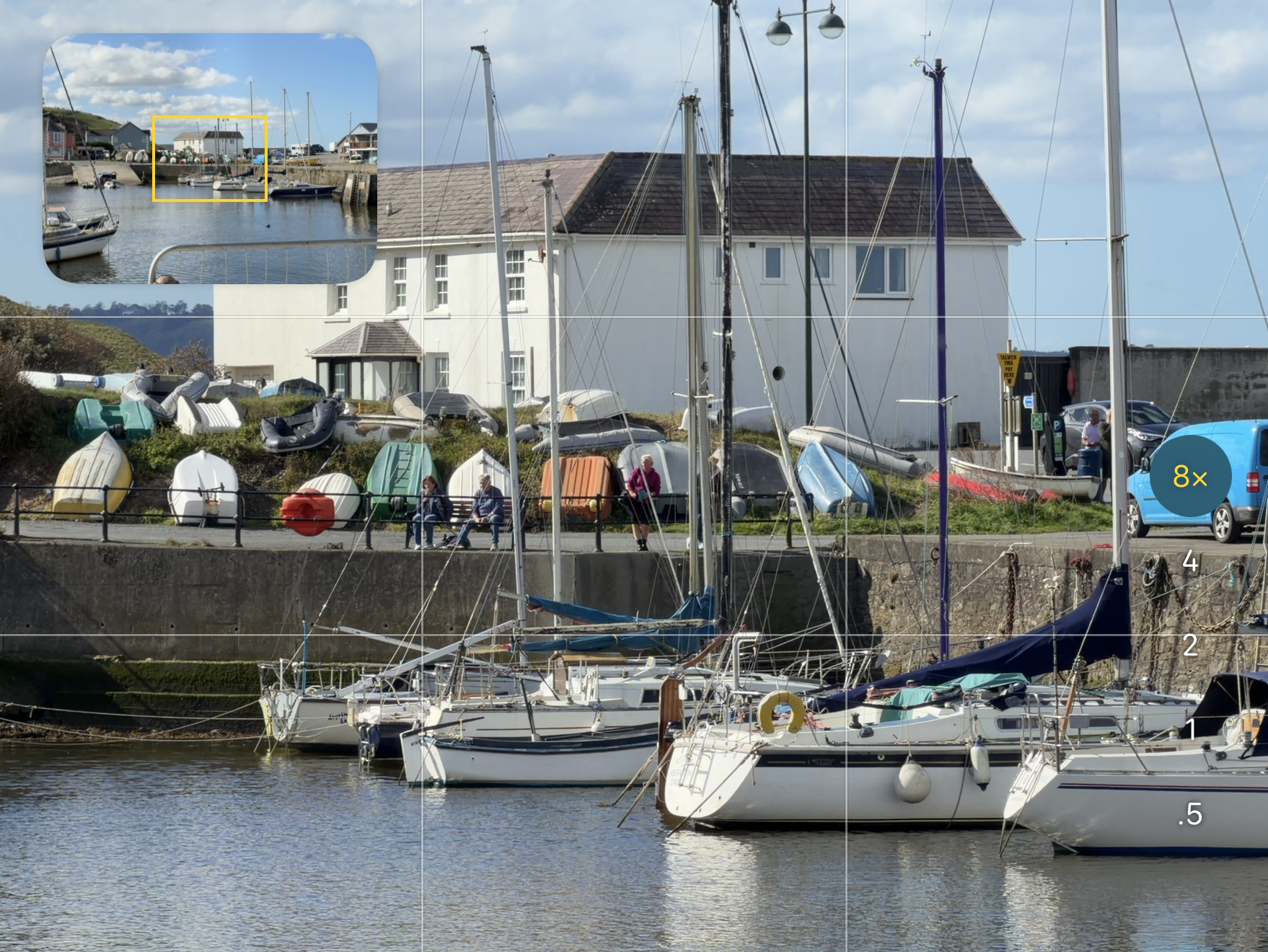 When you switch to the 8x, Apple also adds a preview window in the corner of the screen (see above). At this focal length it’s easy to lose track of where you’re aiming, so the preview helps keep things lined up.